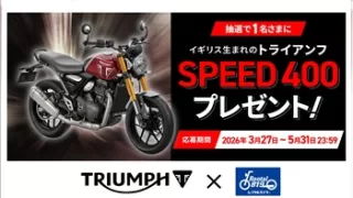 レンタルバイクサービスを展開している「レンタル819」にて、「レンタル819 × トライアンフモーターサイクルズジャパン 特別企画 SPEED 400 プレゼントキャンペーン」が実施されています。抽選で1名様に、「トライアンフ(Triump...