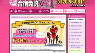 2026年05月締め切り Amazonギフトカード 500円分が当たる!合宿免許WAO!!(2026年5月11日まで)
