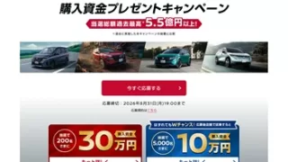 New! 2026年08月締め切り 日産自動車 新車購入支援金30万円、10万円分が当たる!話題の新型車も対象!購入資金プレゼントキャンペーン(2026年8月31日19時まで)