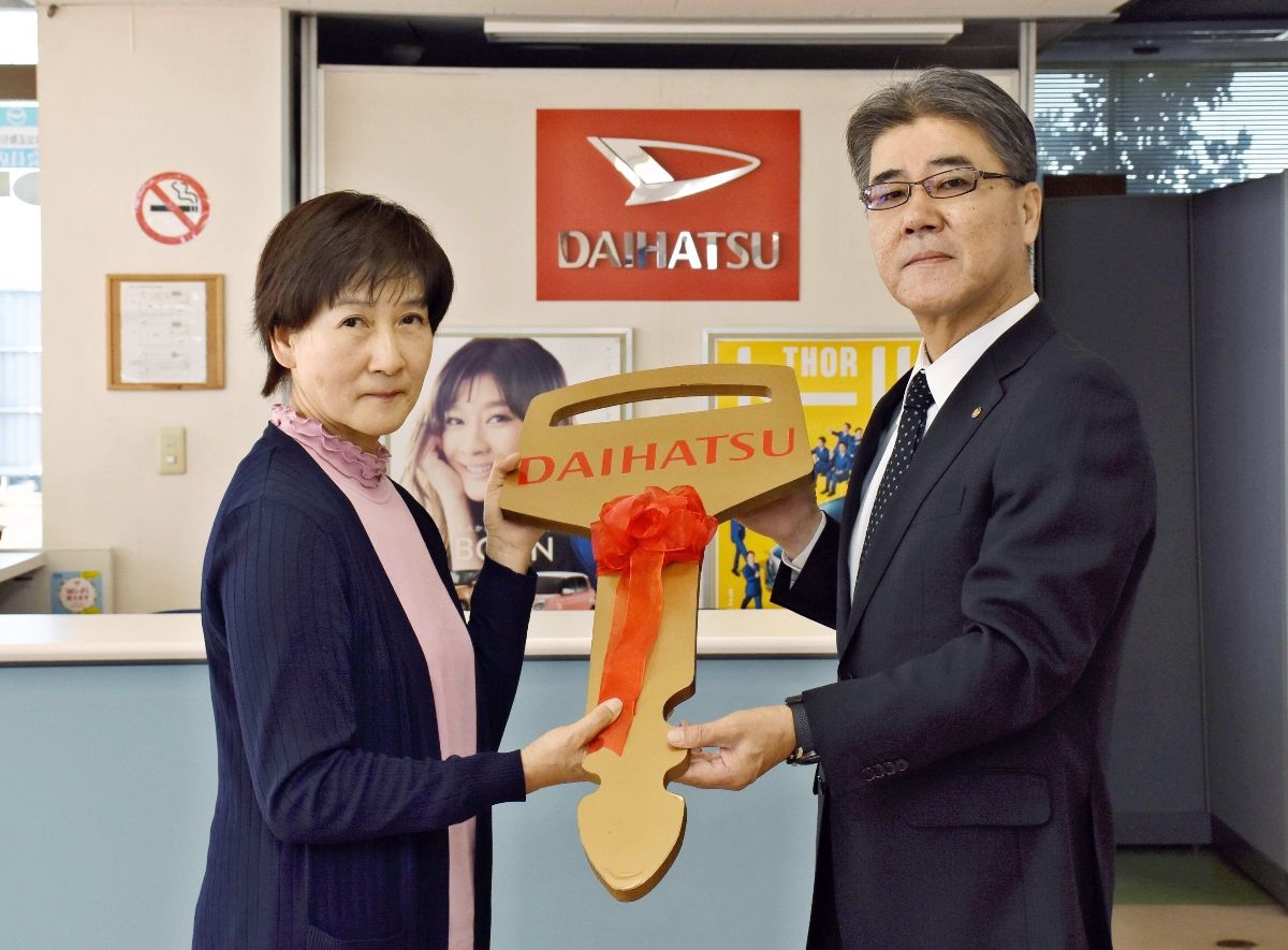 「ミラ トコット」贈呈 「夏休み最後のBigプレゼント」 佐賀ダイハツ販売から山﨑さんに | まちの話題 | 佐賀県のニュース | 佐賀新聞
