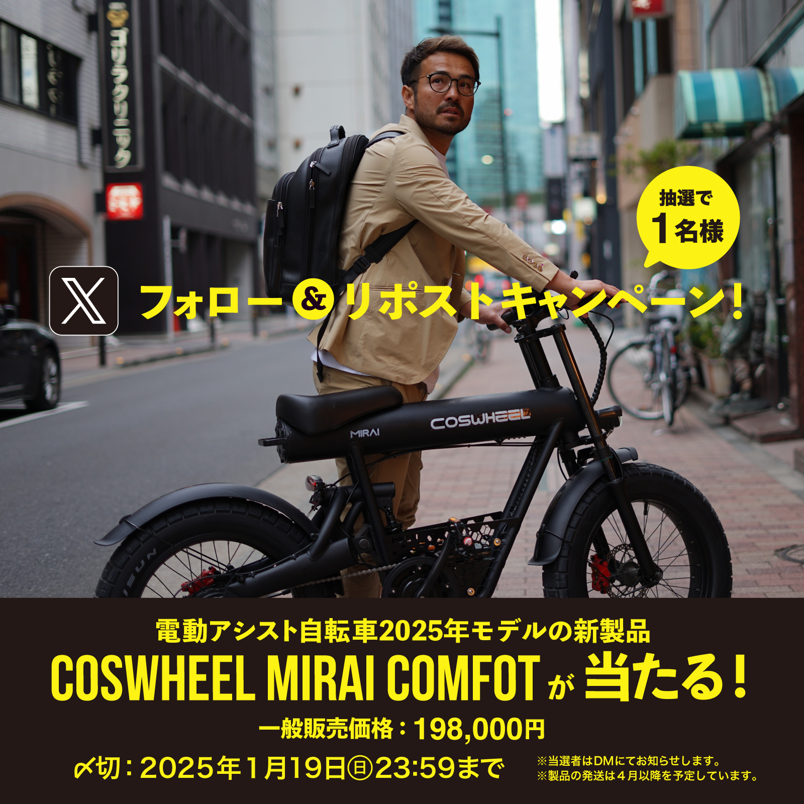 ・株式会社Acalie COSWHEEL MIRAI電動バイク&電動自転車新モデル発売記念!フォロー&リポストキャンペーン
