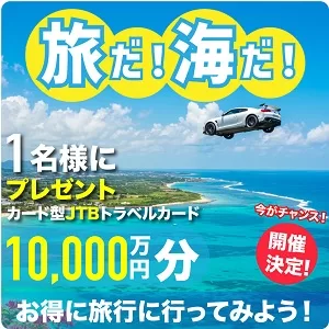 抽選で1名様に、カード型旅行券 JTBトラベルギフト 1万円分が当たります。