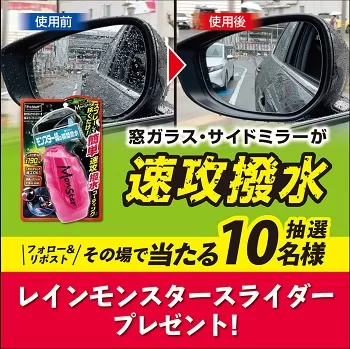 抽選で10名様に、撥水コーティングスプレー 「レインモンスタースライダー」が当たります。