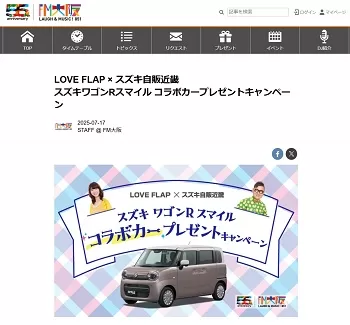 FM大阪にて放送されている 「LOVE FLAP」にて、「LOVE FLAP × スズキ自販近畿 スズキワゴンRスマイル コラボカープレゼントキャンペーン」が実施されています。
