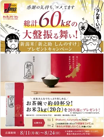 ・車田タクミ 新潟米「新之助」プレゼントキャンペーン