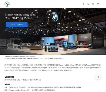 BMW Japanにて、「Japan Mobility Show 2025」チケットプレゼントキャンペーンが実施されています。