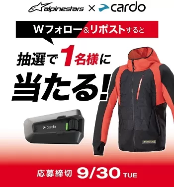 ・Cardo × alpinestars コラボ企画第2弾 Wフォロー&リポストで豪華プレゼントキャンペーン!!