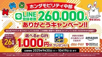 ・ホンダモビリティ中部 公式LINE登録者 260,000人ありがとうキャンペーン