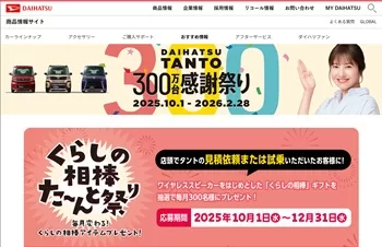 ダイハツにて、「DAIHATSU TANTO 300万台感謝祭り」キャンペーンが実施されています。