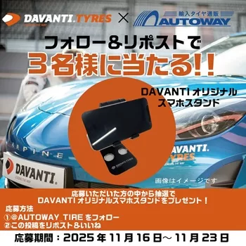 輸入タイヤ通販 AUTOWAY(オートウェイ)のXアカウント(@AUTOWAY_TIRE)にて、プレゼントキャンペーンが実施されています。