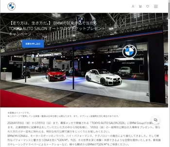 2026年1月9日(金)から1月11日(日)まで、幕張メッセで開催される「TOKYO AUTO SALON 2026」にBMW Groupが出展いたします。 応募期間中に試乗申込をしていただいた方の中から100名様に、 1月9日(金)の一般特別公開日の入場券をプレゼント。限られた方だけが一足先に味わえる、特別な先行公開で展示をじっくりとお愉しみください。