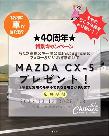 マツダ CX-5が当たる!ちくさ高原スキー場 Instagram(2026年3月8日17:00まで)