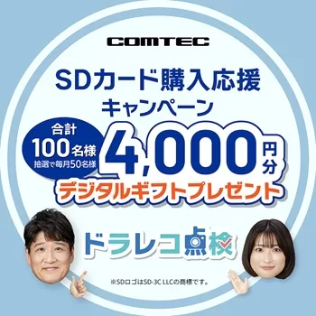 コムテック(COMTEC)のXアカウント(@comtec_jp)にて、SDカード購入応援キャンペーンを実施しています。