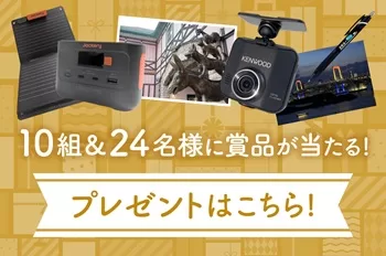 ・抽選で、「KENWOOD ドライブレコーダー」、「東京ドイツ村入場券」、「ポータブル電源・ミニソーラーパネルセット」、「首都高オリジナルグッズ」をプレゼント