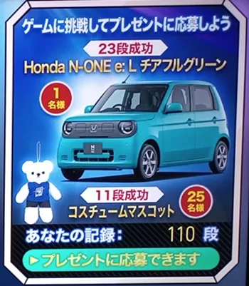 ホンダ N-ONE e: L チアフルグリーンが当たる!最強スポーツ男子頂上決戦2025冬 データ放送ゲーム「モンスターボックスに挑戦!」