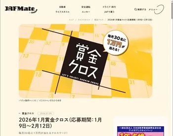 JAF Mate Onlineにて、JAF会員向けに「2026年1月賞金クロス」が実施されています。