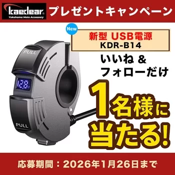 ・抽選で1名様に、「バイク用新型USB電源 KDR-B14」をプレゼント
