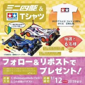コジマミニ四駆倶楽部のXアカウント(@kojimamini4wd)にて、プレゼントキャンペーンが実施されています。