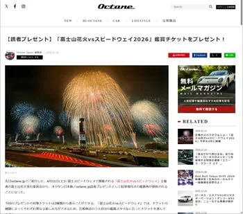 【キャンペーンサイト】:【読者プレゼント】「富士山花火vsスピードウェイ2026」鑑賞チケットをプレゼント! | octane.jp | 美しい車と暮らす