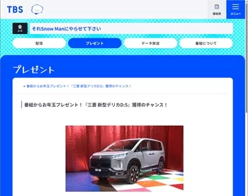 三菱 新型デリカD:5が当たる!それSnow Manにやらせて下さい新春フレンドパークSP(2026年1月4日まで)