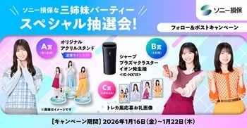 ソニー損保の自動車保険のXアカウント(@sonysonpo_jp)にて、フォロー&ポストキャンペーン「ソニー損保な三姉妹パーティー スペシャル抽選会キャンペーン」が実施されています。