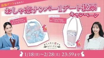 恋愛ドキュメンタリー『おしゃれに恋するわたしたち with Lapin』の動画を見て、1番好きなデートを選んで投票すると抽選で50名様に、「Lapin