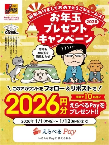 抽選で10名様に、えらべるPay 2,026円分が当たります。