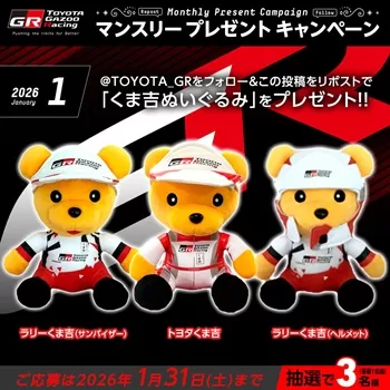 くま吉ぬいぐるみが当たる!TOYOTA GAZOO Racing(2026年1月31日まで)