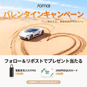 70mai JapanのXアカウント(@70maiJapan)にて、バレンタインキャンペーンが実施されています。