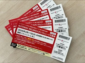 3月11日(水)にみずほPayPayドームにて行われるソフトバンクホークス vs 読売ジャイアンツ(巨人)戦の観戦チケット引換券(AUTOWAY