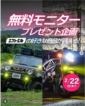 車・バイクのLED・HID専門店エフシーエル(fcl.)のInstagramアカウント(@fcl_ledhid)にて、無料モニターキャンペーンを実施しています。