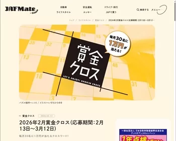 JAF Mate Onlineにて、JAF会員向けに「2026年2月賞金クロス」が実施されています。