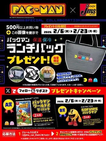 カー用品店・ジェームスのXアカウント(@jms_car_item)にて、「パックマン×ジェームス キャンペーン」が実施されています。
