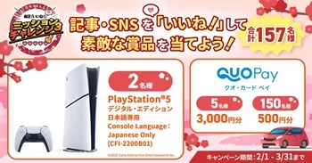 → PS5®プレゼント!『MOBILA 毎日「いいね!」ミッションチャレンジ3』合計157名様に当たる!