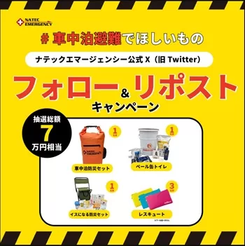 防災セット・防防災グッズ販売メーカー NATEC EMERGENCYのXアカウント(@NatecEmergency)にて、フォロー&リポストキャンペーンが実施されています。