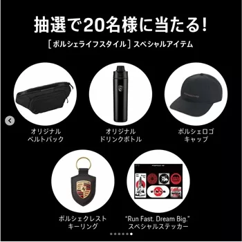 抽選で20名様に、「ポルシェライフスタイル」スペシャルアイテムが当たります。