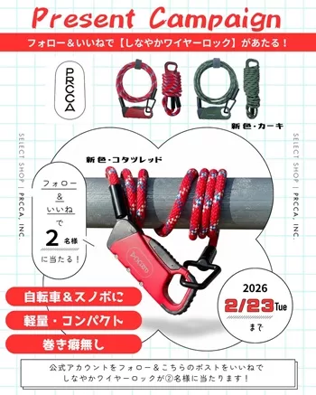 抽選で2名様に、「PRCCA しなやかワイヤーロック」が当たります。