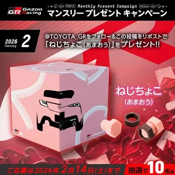TOYOTA GAZOO Racingの公式Xアカウント(@TOYOTA_GR)にて、マンスリープレゼントキャンペーンが実施されています。