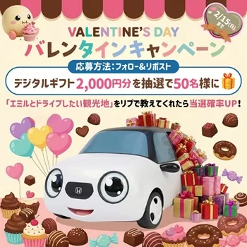 ホンダのアプリ 『with Emile』の公式Xアカウント(@withEmile_Honda)にて、バレンタインキャンペーンを実施しています。