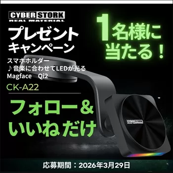 カー用品メーカー CYBERSTORK(サイバーストーク)のXアカウント(@InfoSaibasutoku)にて、カーライフ応援キャンペーンを実施しています。