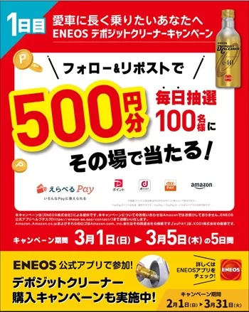 【キャンペーンサイト】:ENEOS公式アプリ(@eneos_ssapp)