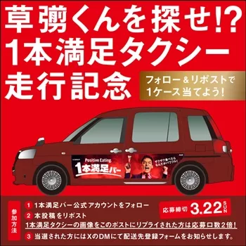 ・1本満足バー 、「草彅くんを探せ!?1本満足タクシー走行記念フォロー&リポストキャンペーン」