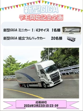 ・抽選で計21名様に、いすゞ「新型GIGA ミニカー(1/43サイズ)」、「新型GIGA 組立プルバックカー」をプレゼント