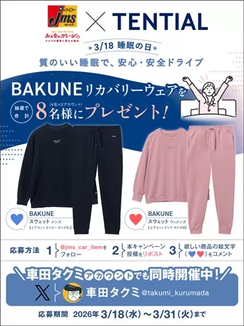 カー用品店・ジェームス(@jms_car_item)と車田タクミ(@takumi_kurumada)のXアカウントにて、「睡眠の日キャンペーン」が実施されています。