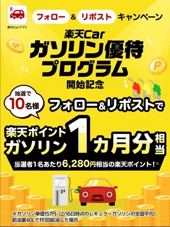 ・楽天Car 「楽天Carガソリン優待プログラム開始記念フォロー&リポストキャンペーン」