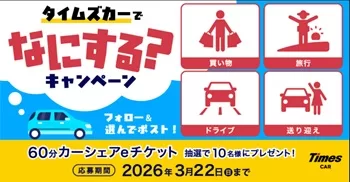 タイムズカーの公式Xアカウント(@timescar_jp)にて、「タイムズカーでなにする?キャンペーン」が実施されています。