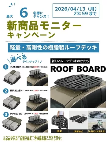 【キャンペーンサイト】:[モニターキャンペーン][新製品]軽量・高剛性の樹脂製ルーフデッキ 『ルーフボード』|株式会社カーメイト 公式企業サイト