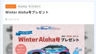 車両本体 スバル CROSSTREK Winter Aloha号が当たる!FM NACK5 「Winter Aloha」(2026年1月31日まで) FM NACK5で毎週土曜日5:00~放送、FM NACK5「Raise on Saturday~どうする!土曜日!!~」内「Winter Aloha2026 Snow Trip Guide」で使用しているWinter Aloha号、SUB... 2025.12.23 2026年01月締め切りスバル車両本体