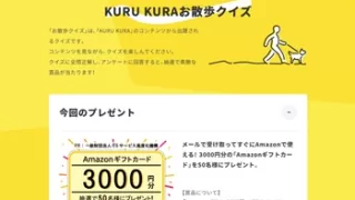 過去の懸賞情報 Amazonギフトカード3000円分が当たる!KURU KURAお散歩クイズ(2025年11月30日まで)