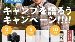 過去の懸賞情報 ソニー デジタル一眼カメラ、スノーピーク サーモタンブラー、バイきんぐ西村瑞樹さん監修スパイスが当たる!ソニー損保(2025年9月5日まで)